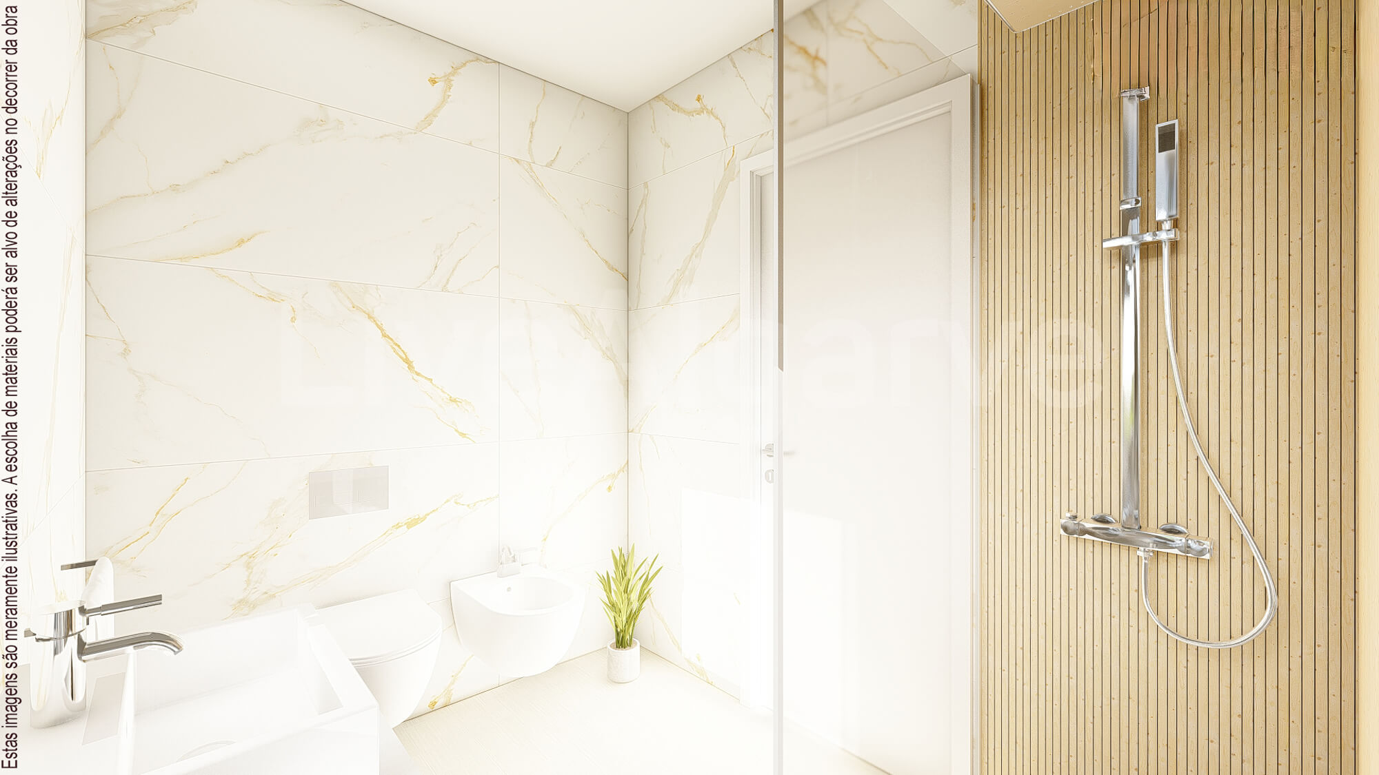 The main living area integrates kitchen, dining, and lounge into a single open-plan space of approximately 46 m², establishing a transition between the interior and the terrace. The kitchen, centered around a functional island, will be delivered fully equipped and conceived for conviviality as much as for utility. Large glass doors lead to an 18 m² covered terrace, an ideal extension of the social area, complete with a built-in barbecue.