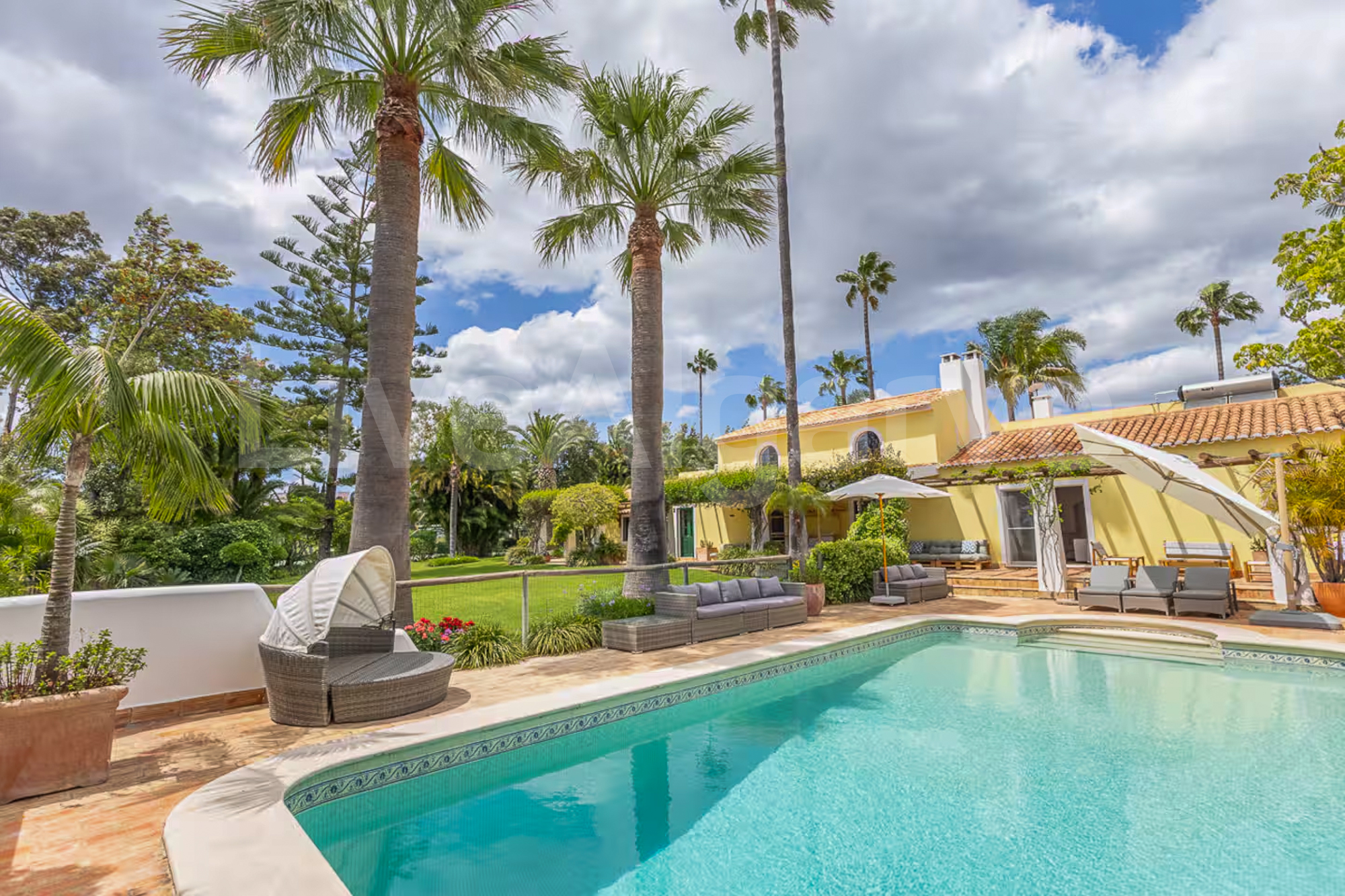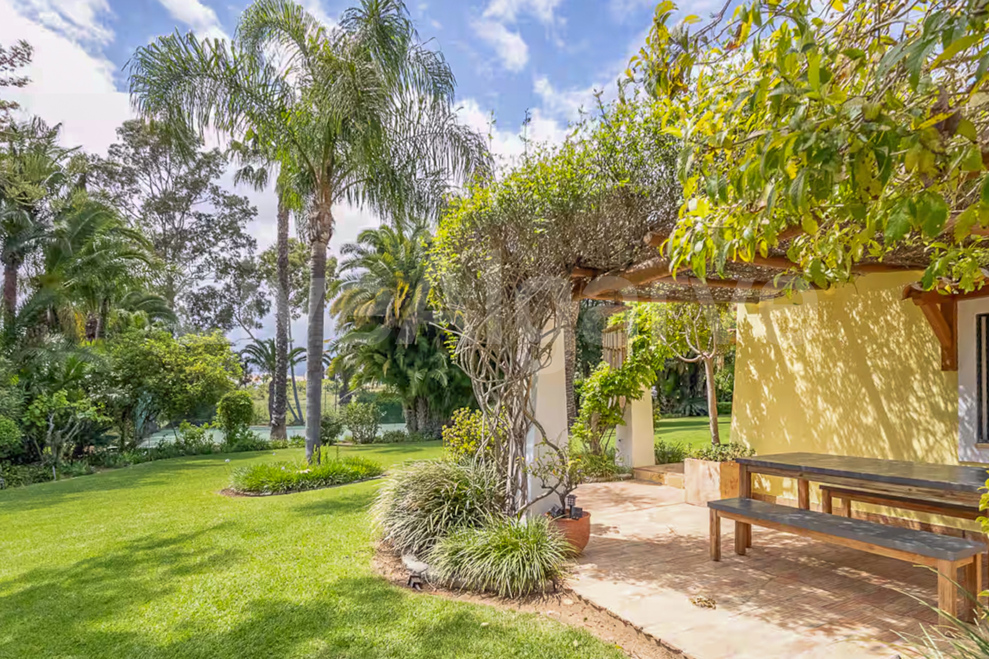 - 3 Luxurious En-Suite Bedrooms: Each bedroom features built-in closets and direct access to the beautifully landscaped garden and the 32 m² swimming pool.