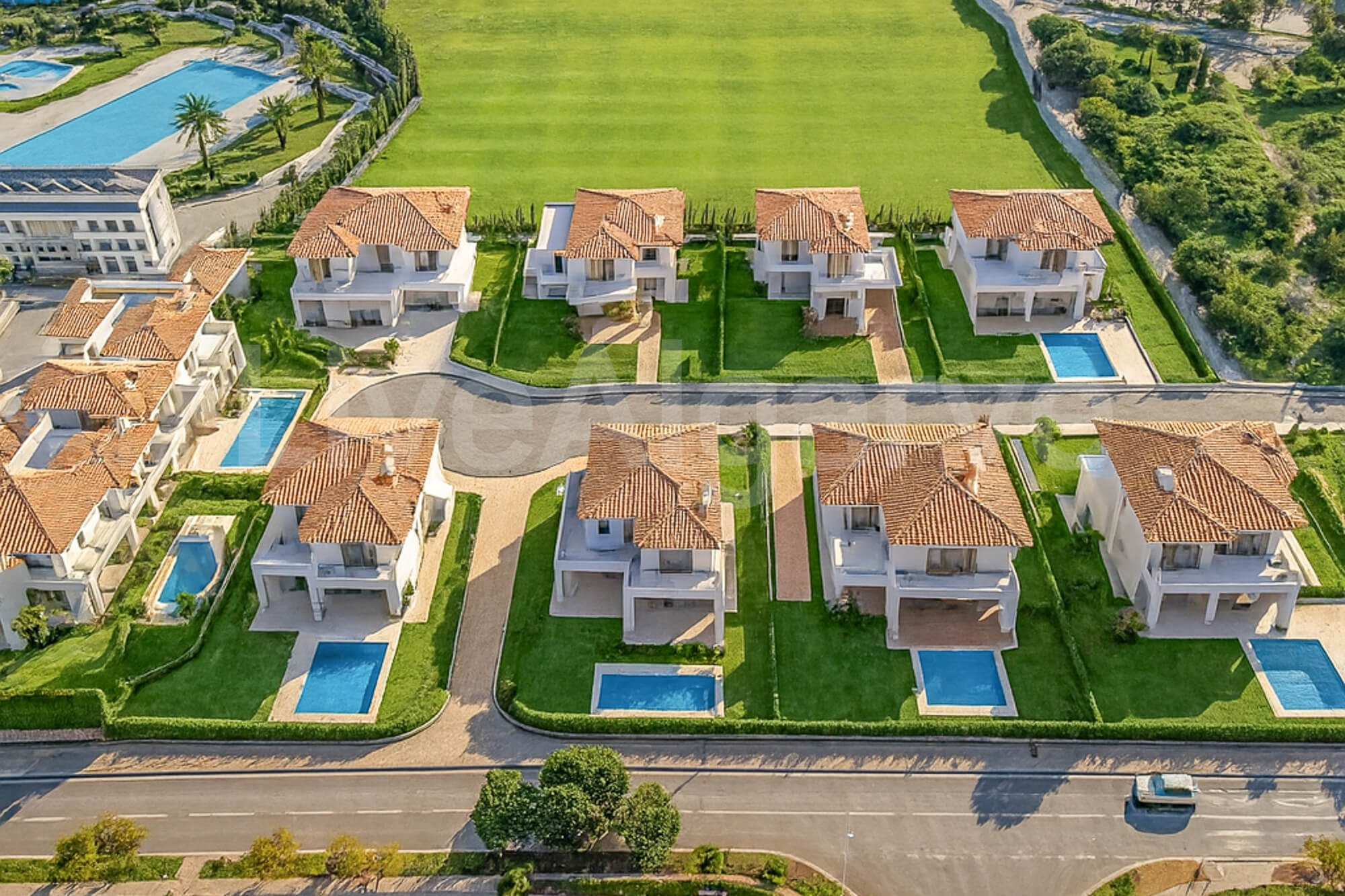 A moradia está situada num terreno de 569 m² e tem um grande terraço para banhos de sol, piscina e jardim paisagístico.